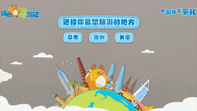 “胖鹿速游记”将每个国家的标志元素立体化呈现在一块棋盘地图上,第一时间触动用户对旅行目的地的了解和想象。通过摇杆这种常见的手游操作方式实现0门槛的方式切换轻松上手,同时在游戏中不断强化对“胖鹿”这一标志形象的认知输入,实现品牌印象的积累。