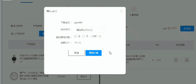 在会员收银台”代缴商品”中,支付方式新增加了”微信支付”和”支付宝支付”两种支付方式.在选择了对应的支付方式后,会读取出该会员的的账户余额,可选择本次支付时是否使用余额进行抵扣.(在使用余额抵扣时仅支持全部余额抵扣,不支持自定义使用余额) 选择好支付方式后点击”提交订单”即会生成该会员的订单并进入选择对应的支付方式支付. 2.两种收银方式