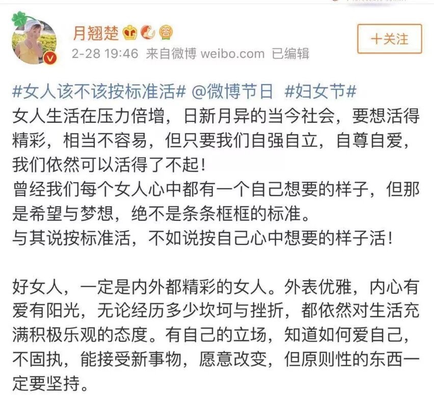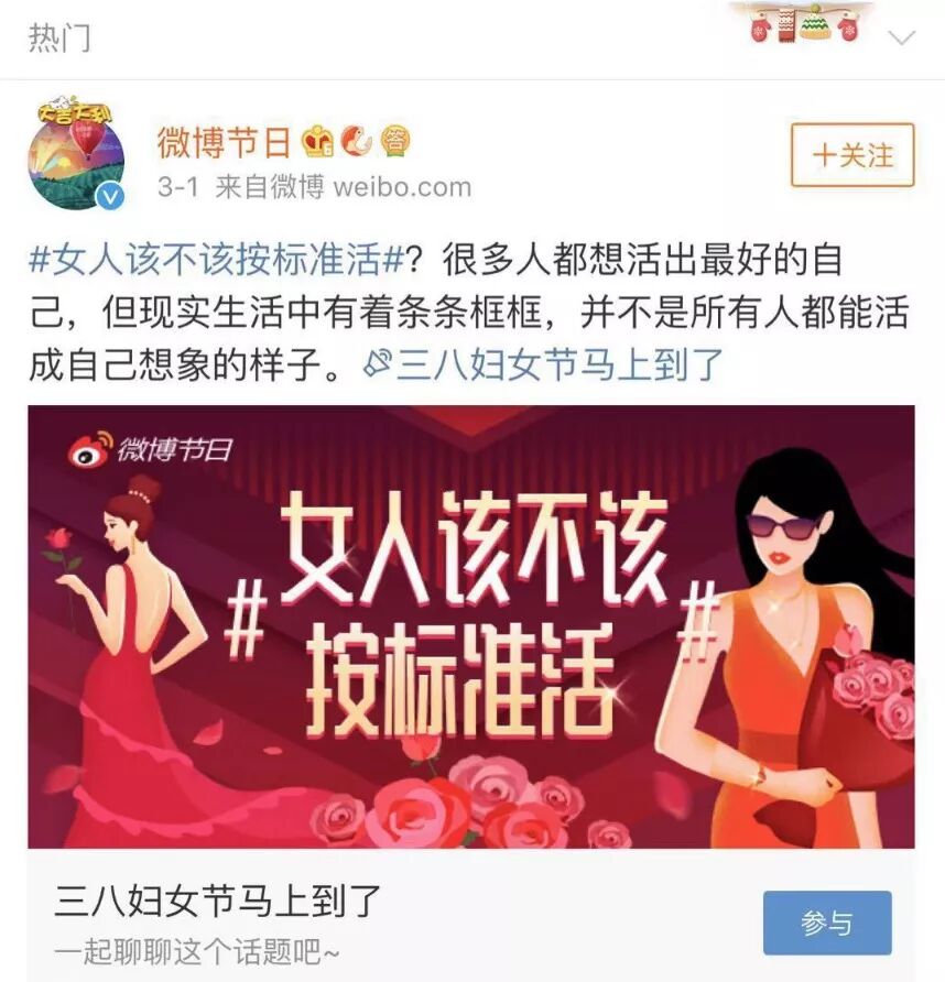 “女王节”来临,正在码字赶稿的度小信在这里给“女王陛下”们送上最诚挚的节日问候。“半边天”过节,媒体上最受关注的自然是围绕女性的各类话题,刷机大王度小信发现,“微博节日”里提出了一个个性又耐人深思的话题“女性该不该按标准活”?