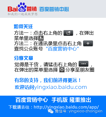 活动说明: 活动时间:2014年3月10日-21日,仅工作日。 活动内容:关注百度营销中心官方微信账号,并参与“每日一题”活动,即有机会获得奖品。 参与方式:在出题当日8:00~20:00,给百度营销中心官方微信发送“答题”,即可获取当日题目;微信回复正确答案选项,即可参加答题。 奖项设置: 幸运奖: 每日3名,随机在作答正确的用户中抽取。 奖品:50元京东礼品卡 达人奖: 共1名,活动结束后,随机在活动期间答对不少于8题的用户中抽取。 奖品:500元京东礼品卡 |