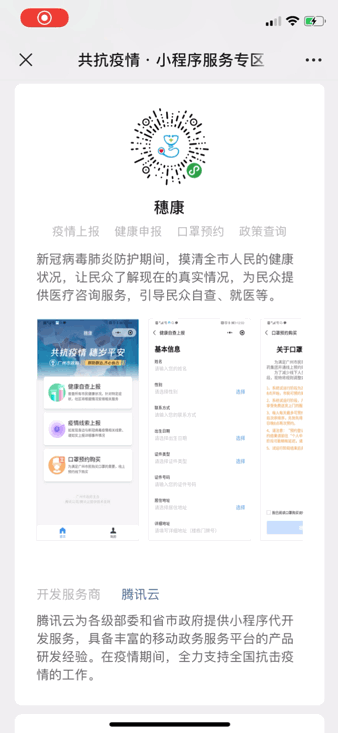 腾讯作为发起方,将在微信开放社区上线服务专区,并提供资金和资源支持服务商和开发者为政府部门、医疗机构等快速开发疫情服务小程序。