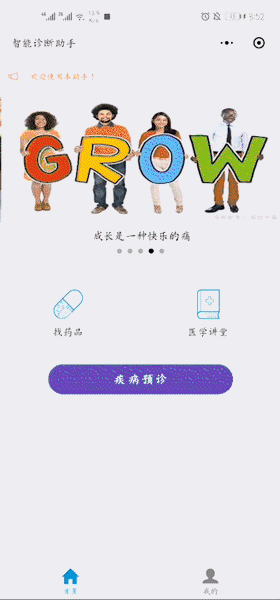 “智能诊断助手”目前主要有“疾病预诊”、“医学讲堂”、“药品查询”这三大功能,整体设计和功能模块简约化,奉行简约不简单的理念。