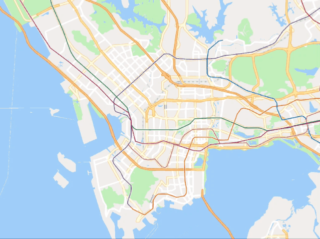 为了将数据更加酷炫的呈现在地图上,基于JavaScript API GL我们提供了一套位置数据可视化API,它可以实现轨迹数据、坐标点数据、热力、迁徙、航线等空间数据的可视化展现。