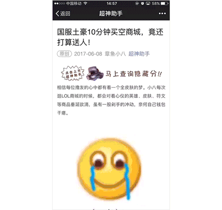 大画幅视频自动播放,让TA移不开眼 互选广告短视频样式出现在公众号文章末尾,以短视频作为广告外层素材,在文章内自动播放。广告主可以根据创意需求,在6秒-15秒范围内自定义视频长度,用生动的视频传达品牌理念,第一时间紧抓用户注意力。短视频样式提供16:9和4:3两种尺寸供广告主选择,自定义画幅效果,收获更加惊艳的广告表现。 vivo互选广告短视频样式示意 为了宣传新机Xplay 6非凡的游戏体验,vivo率先尝鲜,跨界王者荣耀,以趣味视频——“拜托你别坑,麻烦专业点”为素材,投放公众号互选广告短视频样式。希望深入游戏、娱乐等年轻人活跃的圈层进行推广,展现其“有趣有为”的形象。 魔性视频配合互选短视频新样式,收获了极佳的广告效果。自动播放合唱视频选段,搞笑吐槽游戏中“坑队友”的同时,还保有故事悬念,引发用户好奇并点击广告观看完整版视频,最终为广告带来平均16%+的点击率。粉丝被魔性视频打动后纷纷留言,“厉害了我vivo,王者梗玩的6666、“看来不想坑,就得用vivo”,让其有趣有为的品牌形象越发深入人心。 目前短视频样式正以邀请制内测,如有兴趣,可咨询微信广告助手,在线客服会及时为您解答。