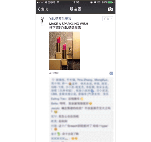 七夕高能预警!回顾朋友圈节日广告,如何让一支口红成为爆款?-绍兴微信小程序开发为你呈现时间:2020-08-08 如果说把钻石塑造成忠贞爱情的象征是营销史上最经典的案例之一,那么将口红变成表达爱意的首选礼物,则是互联网时代社交营销的一大成果。在社交网络的广泛传播下,口红成为各大彩妆品牌最畅销的品类之一。 2017年,圣罗兰、兰蔻、迪奥、欧莱雅等国际一线彩妆品牌,不约而同地在节日投放朋友圈广告,宣传自家的口红产品。借助朋友圈广告强大的的社交属性和数据能力,发挥节日营销效应,从整体带动品牌推广和促进销售。今年七夕将至,如何能在节日强力吸睛,看看微信广告为你准备的答案。 社交互动, 带动流量销量双增长 朋友圈广告的一大“独门绝技”就是熟人之间的强关系社交互动性。朋友圈的分享属性使其成为熟人之间的交流广场,而熟人之间的互相推荐、交流讨论又恰好实现了彩妆类品牌主最在乎的“口碑传播”。 迪奥朋友圈广告示意 今年女神节(3月8日),迪奥以888为广告创意,为“烈艳蓝金唇膏”投放了朋友圈广告,定向核心重点城市的白领女性人群。经典产品借势节日氛围,白领丽人们在广告评论区中互相种草——“广告来的真及时,节日礼物就它了”、“@All,这系列超好用,大推荐”。社交互动加成节日氛围,使这支广告的互动率和点击率均高于行业均值,火热的互动更直接带来了火爆的销量。 与此同时,朋友圈广告也是品牌收集用户声音,直接与用户进行互动沟通的绝佳渠道。今年5月20日,作为携手戛纳电影节20年的官方合作伙伴,欧莱雅通过朋友圈广告向用户赠送52,000份限量礼盒,借助几位大牌代言人的明星效应推广明星产品“琉金唇膏”,并通过用户自发的参与和分享带动品牌传播。 欧莱雅朋友圈广告示意 “@广告主”功能使用户与欧莱雅品牌之间直接互动,热闹的评论区催化了用户的参与热情。上线一小时之内,52,000支唇膏礼盒全部领完,点击互动率高于行业均值。而微信礼券的领取有效带动了后续的转化,在恢复原价购买后,依然有近千支的销售量。广告创意充分刺激朋友圈的互动特性,加之@广告主新功能,欧莱雅实现了品牌与消费者的充分连接。 数据挖掘, 民间美妆达人发挥“KOL效应” 对于美妆类目标用户来说,明星博主的推荐极具影响力和销售转化力。事实上,我们身边好友中一定也有美妆小达人,他们是朋友圈的“意见领袖(KOL)”,比大V更令你信服。 朋友圈广告通过社交大数据挖掘,筛选出“民间彩妆达人”人群,通过他们对广告的积极评论转发,强力种草,影响社交链上的同好人群,从而形成朋友圈中的无数个”KOL效应”。 YSL朋友圈广告示意 去年圣诞节,YSL推出圣诞节限量版星辰产品套装,并投放朋友圈广告,希望利用节日效应再次推广火爆网络的星辰系列。借助朋友圈广告的大数据能力,除了将广告推送给YSL的典型消费者——彩妆、时尚、美容标签人群,还特别为YSL挖掘出“民间美妆达人”人群进行投放。热衷美妆信息的达人们对YSL品牌认可度极高,并对广告呈正向互动行为,是品牌绝佳的种草达人。 这批达人在接受到广告后,积极分享、点赞及评论,这些互动行为进一步促进了广告效应的发挥,数百套限量版产品5分钟内被抢售一空,点赞率更高出行业平均水平163%,再次掀起社交网络的星辰热潮,借助明星产品热度为官网引流也有效带动了品牌其他产品的销售。